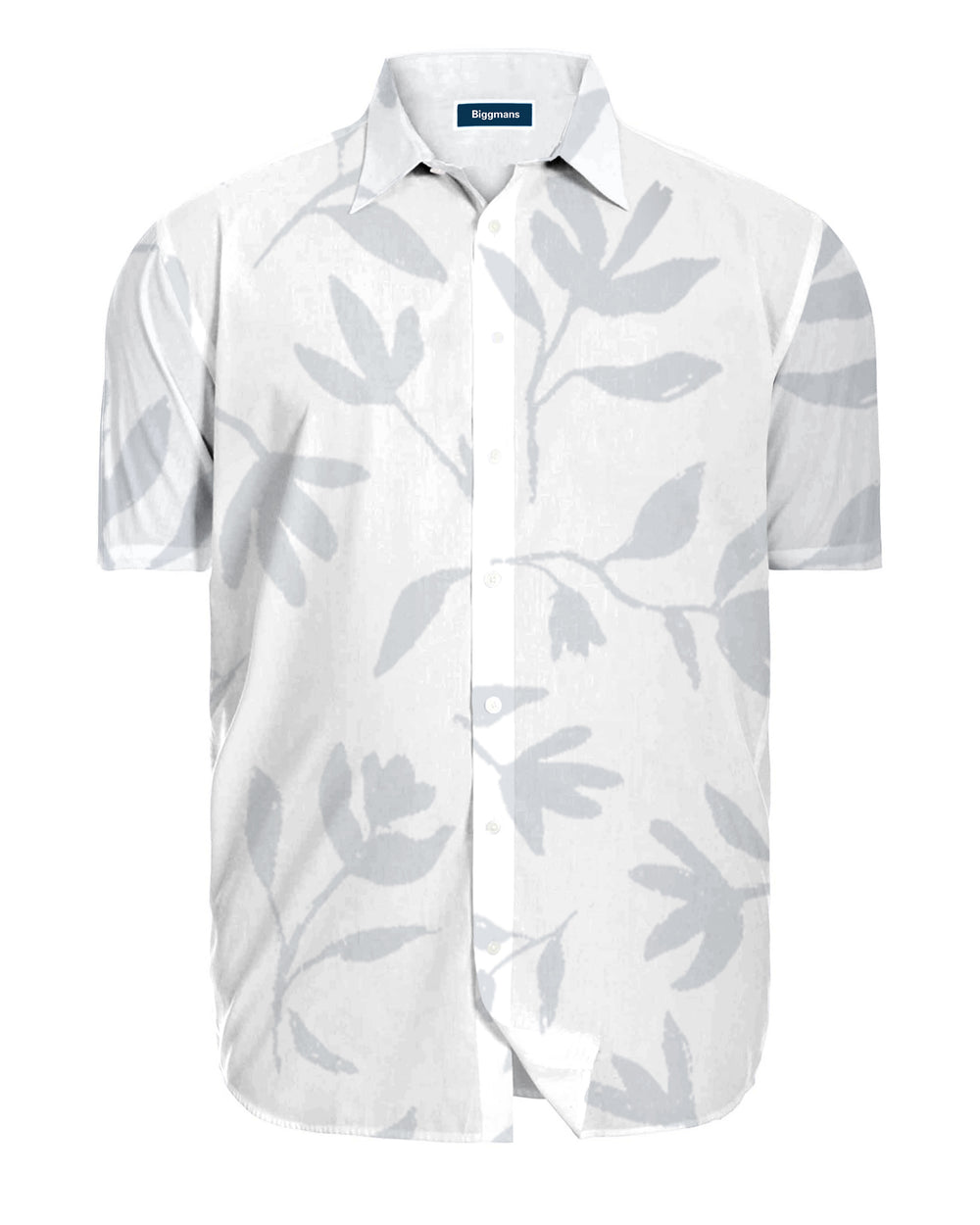 White Hawaiian Leaf Jacquard Craft Printed Shirt Trousers Suit Men's Plus Size