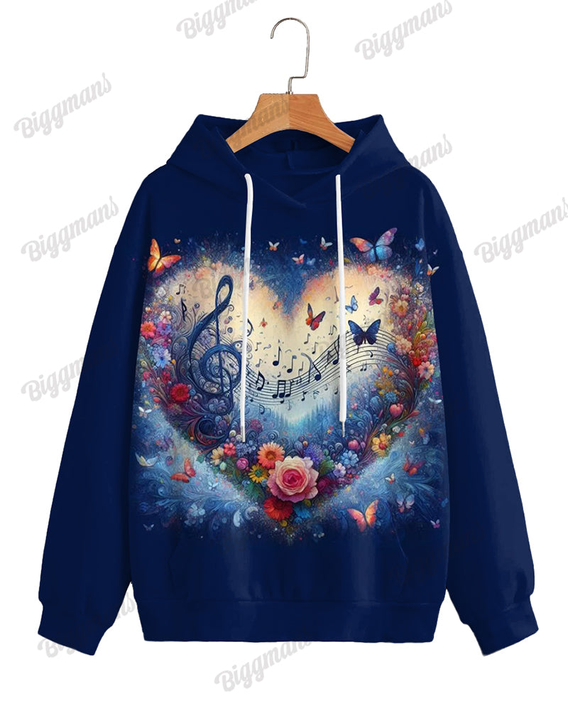 This women’s big & tall hoodie blends floral with the musical notes. Crafted from soft, blended fabric, the hoodie offers comfort and style with its relaxed, dropped shoulder cut. The delicate details enhance its whimsical and dreamy appeal. Ideal for those who love a cute, feminine vibe.