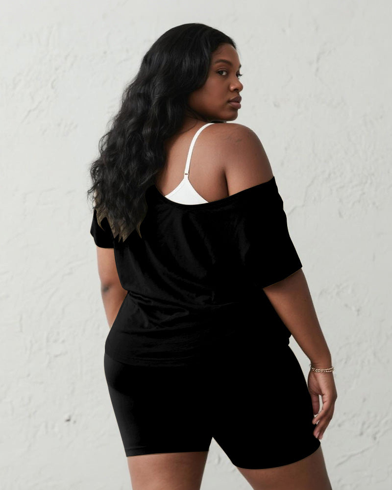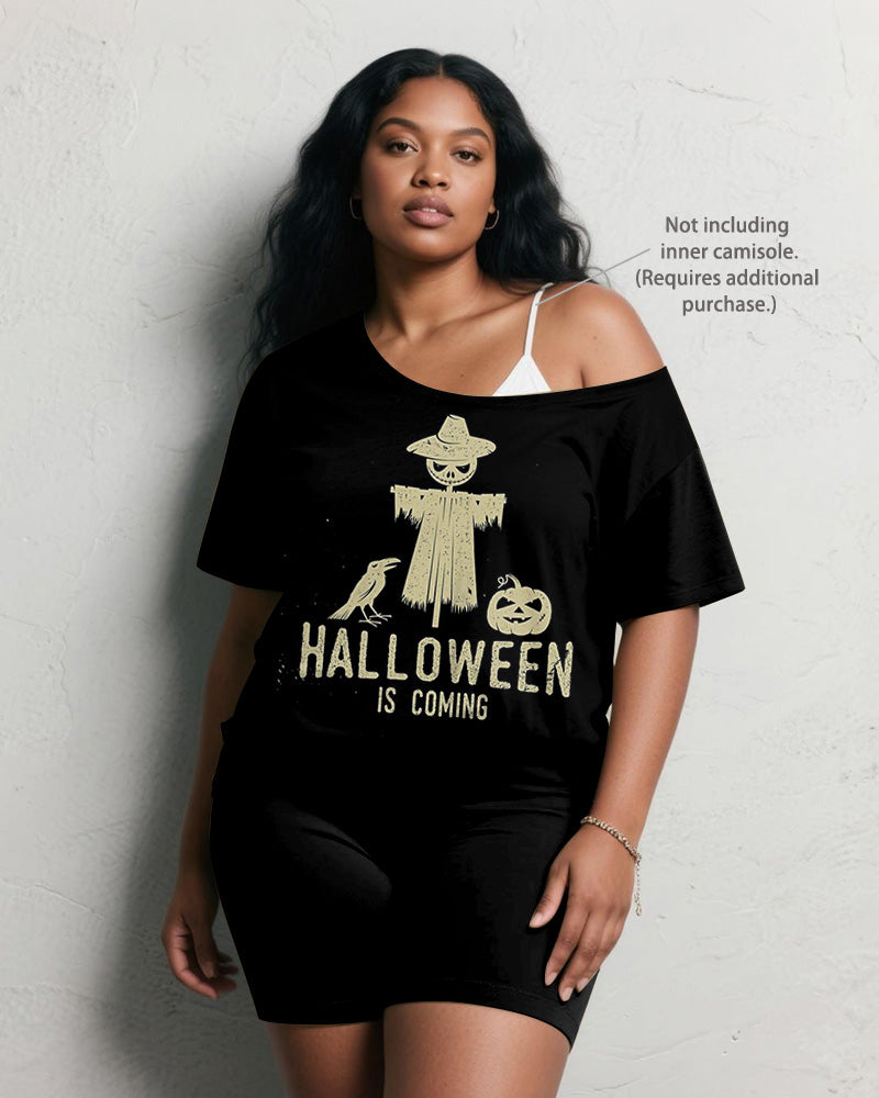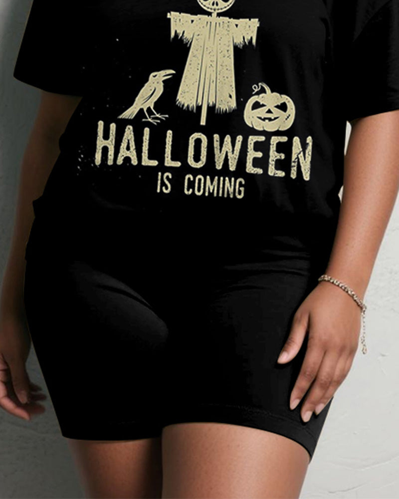 Women's Big & Tall Halloween Letters Graffiti Print Short Sleeve Shorts Suit