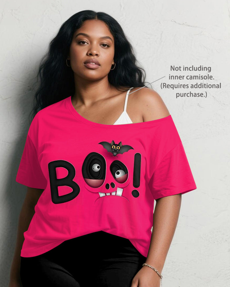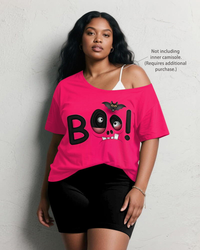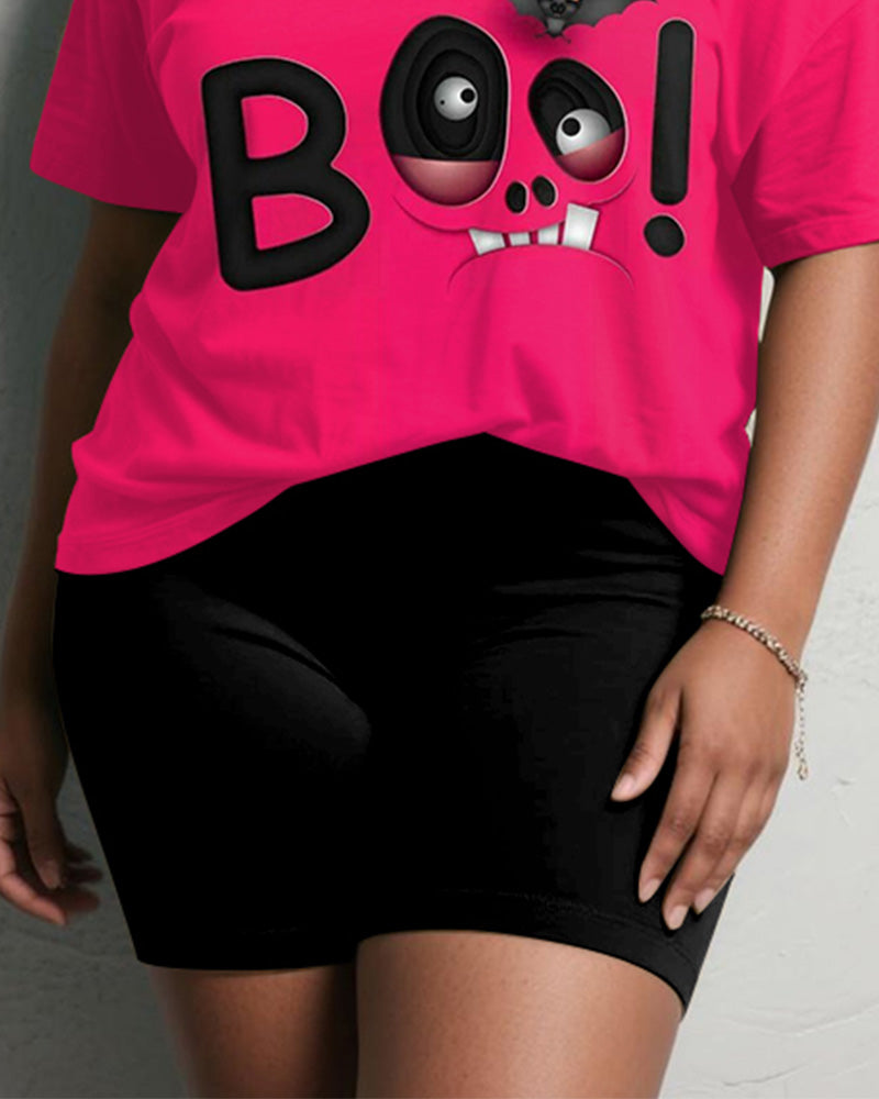 Women's Big & Tall Halloween Rose Boo! Graffiti Print Short Sleeve Shorts Suit