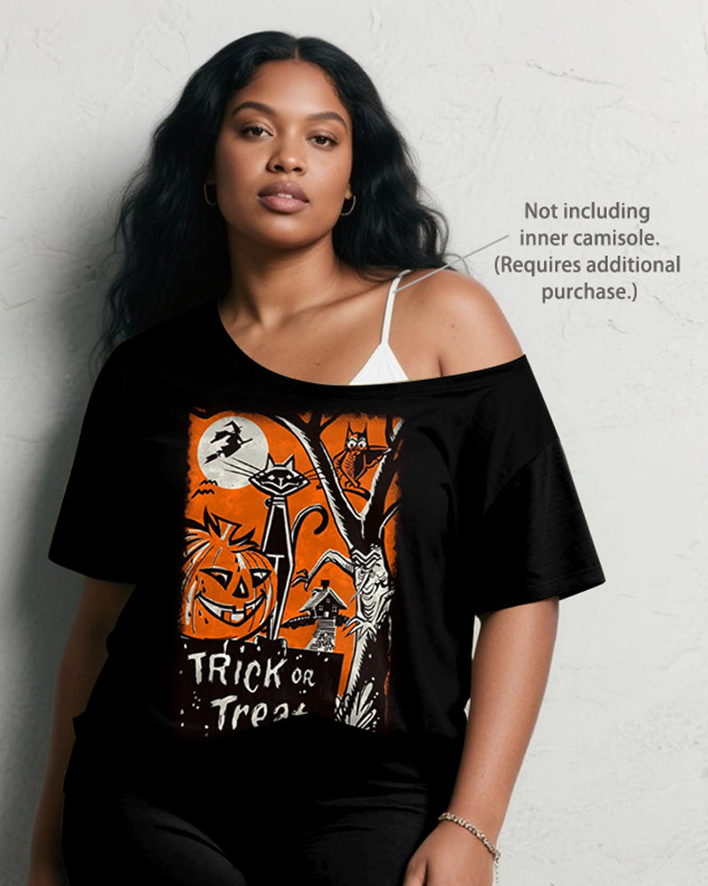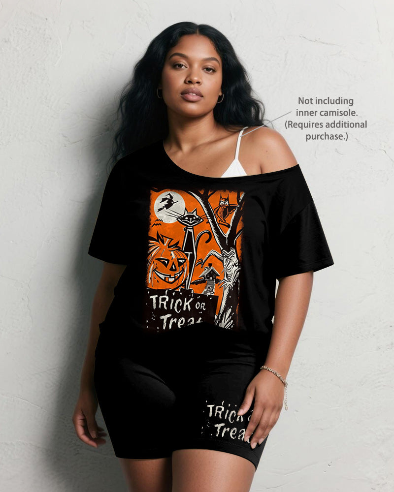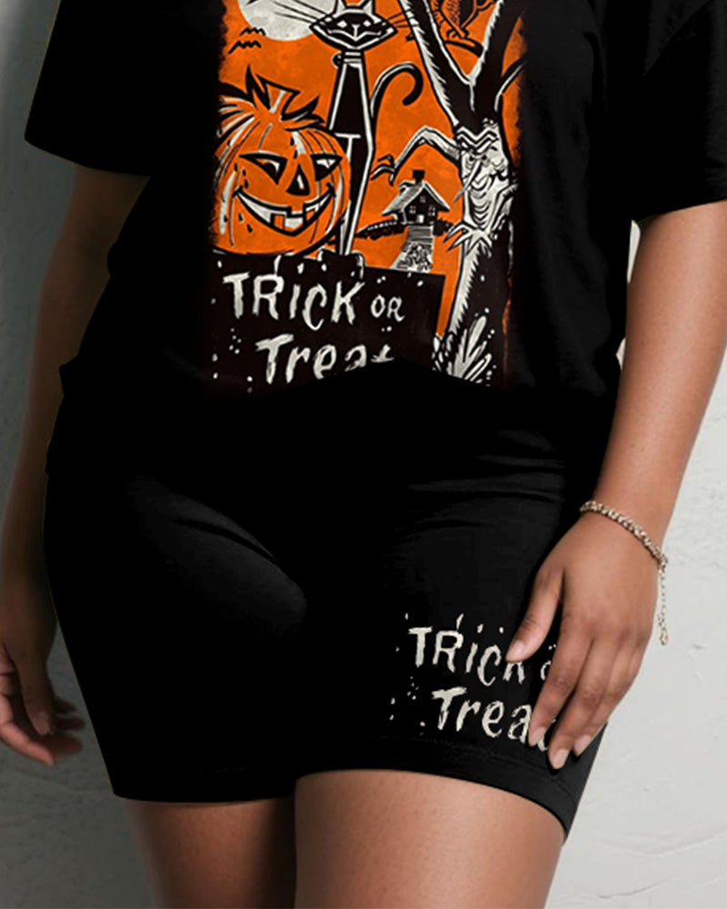 Women's Big & Tall Halloween Trick Or Treat Graffiti Print Short Sleeve Shorts Suit