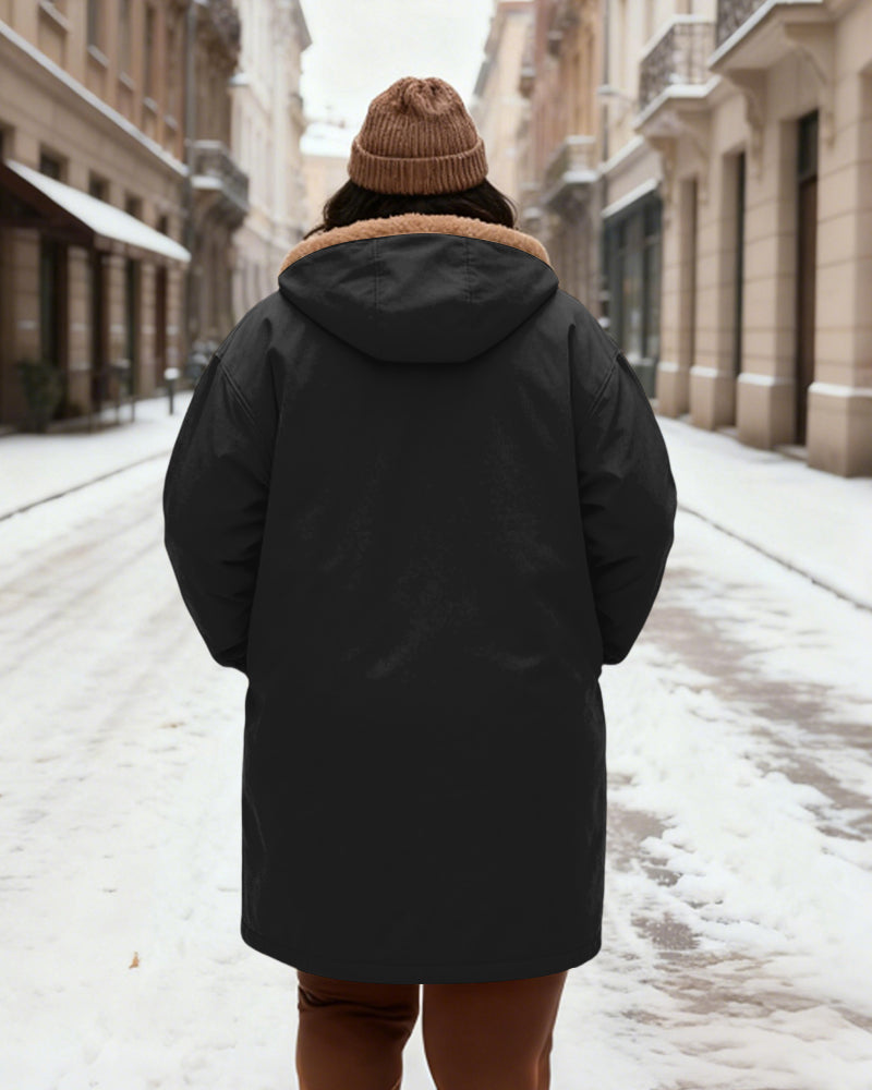 Women's Black Base Purple Blue Butterfly Printed Velvet Thickened Long Hooded Coat