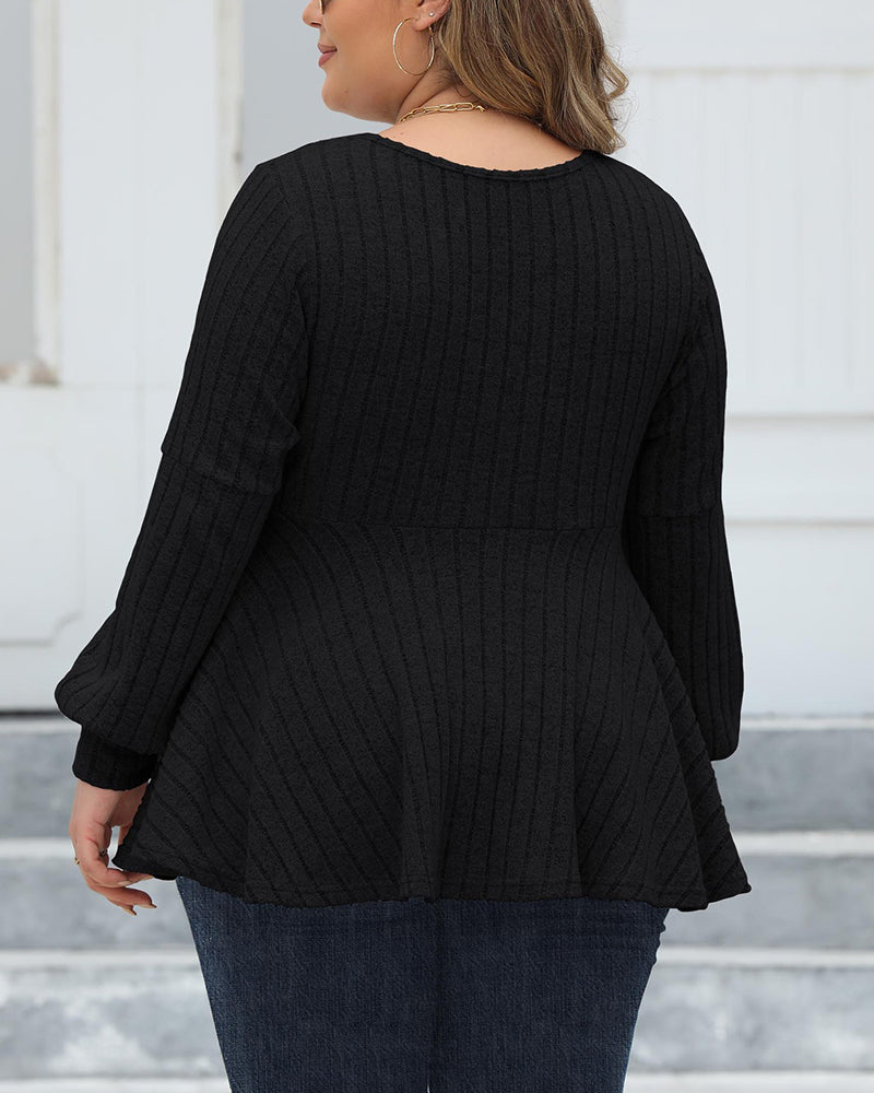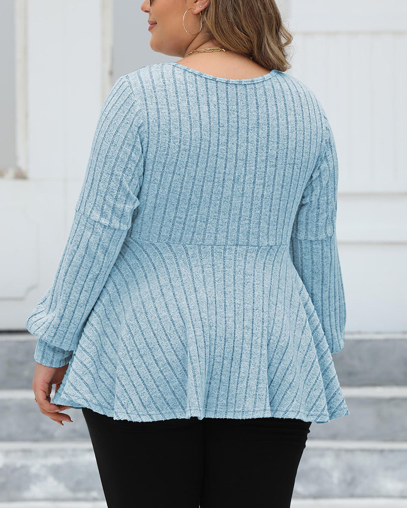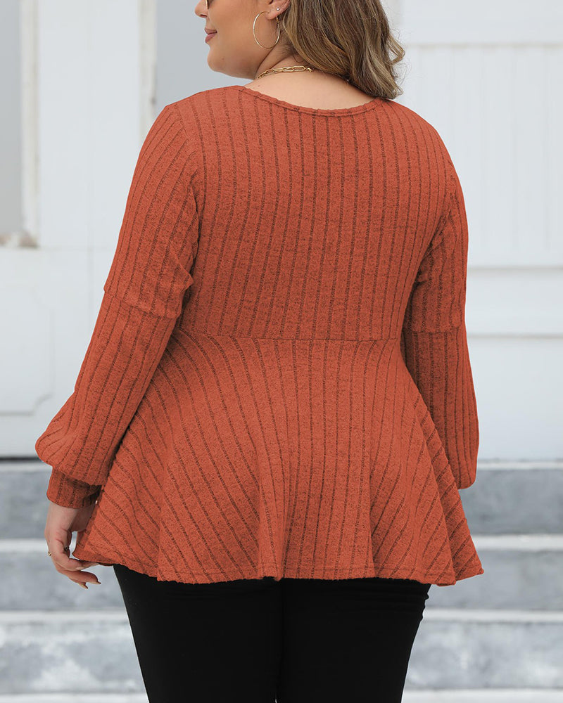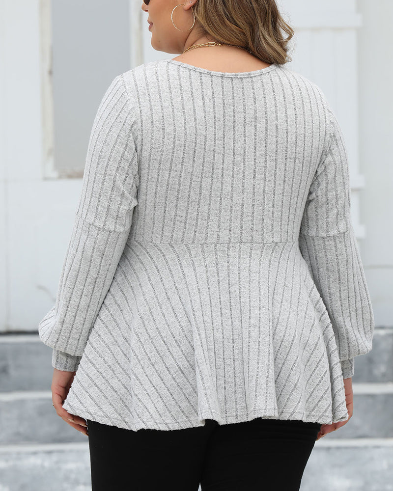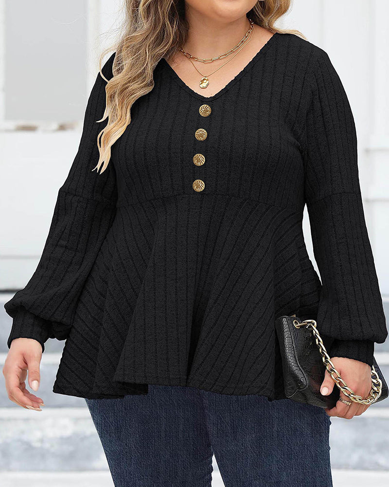 Women's Large Solid Color Striped V-neck Gold Button T-shirt L-5XL