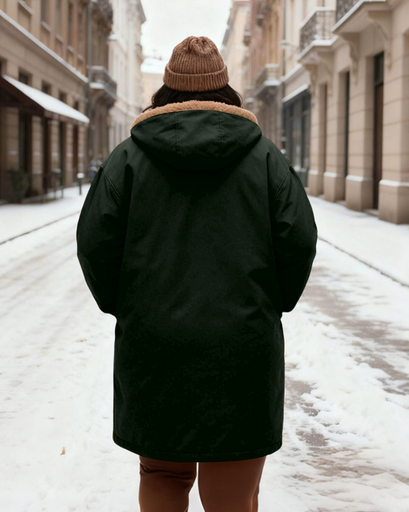 Women's Love PINK Printed Velvet Thickened Long Hooded Coat