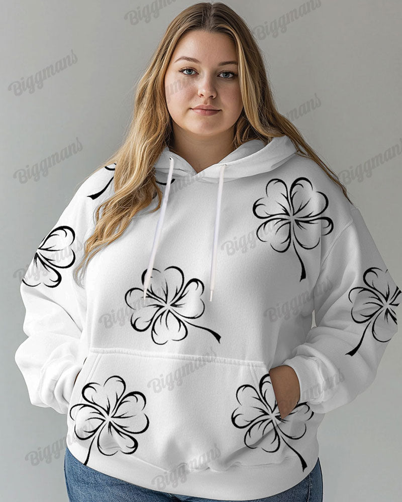 Women's Plus Four Leaf Clover Print Long-sleeved Hoodie