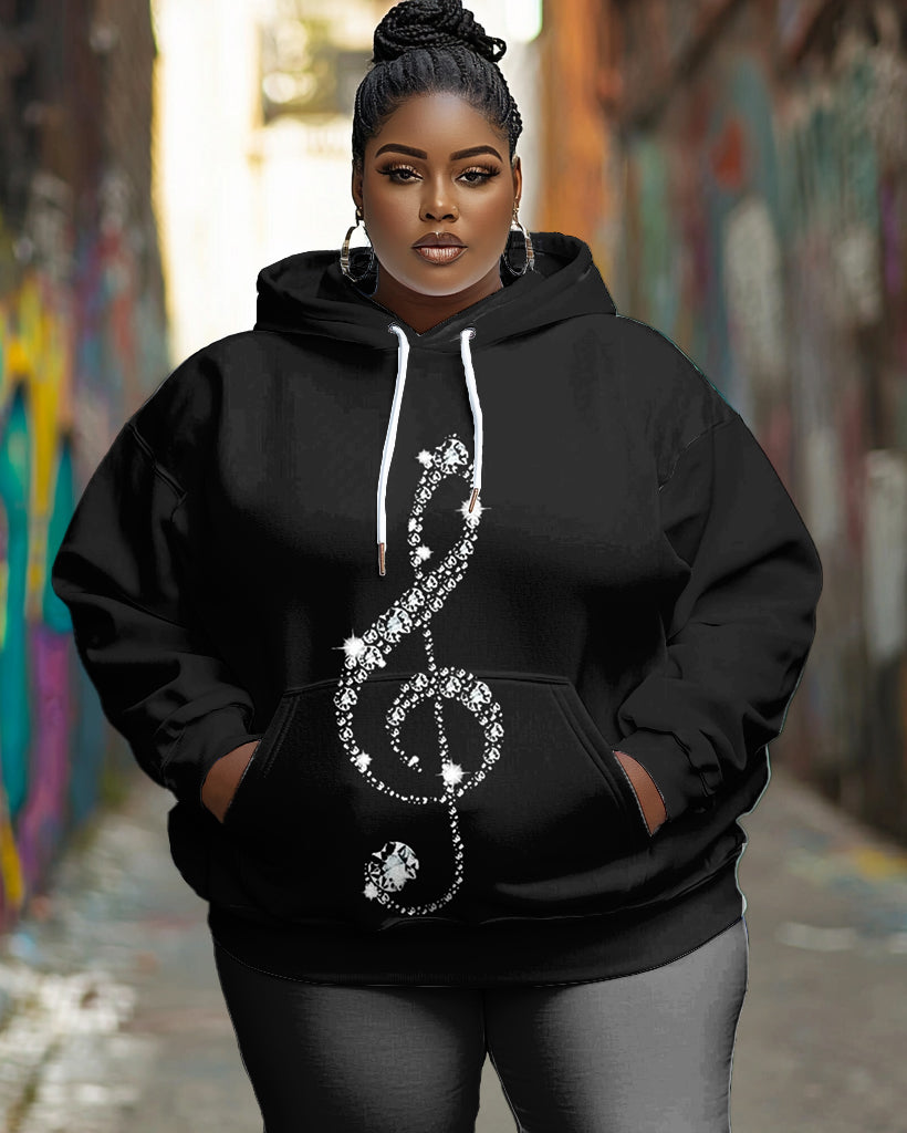 This black hoodie is all about understated cool. Featuring a simple music note print, its minimalist design exudes a chic vibe. Perfect for the modern "cool girl," it offers a relaxed fit that ensures comfort. Casual yet personal, it’s the ultimate go-to for expressing your individuality.