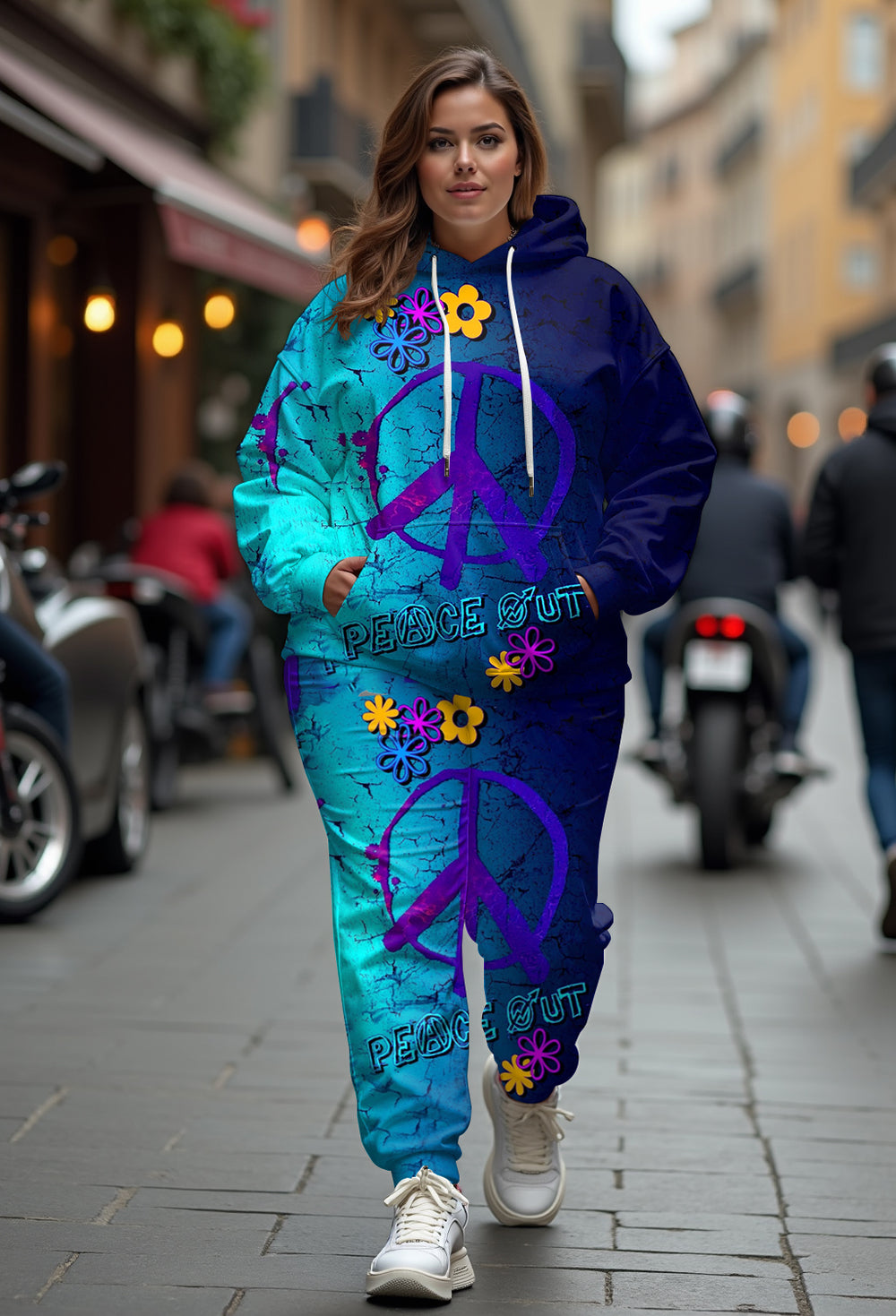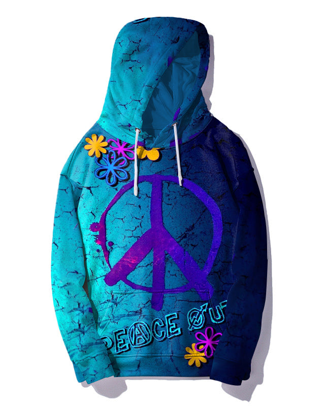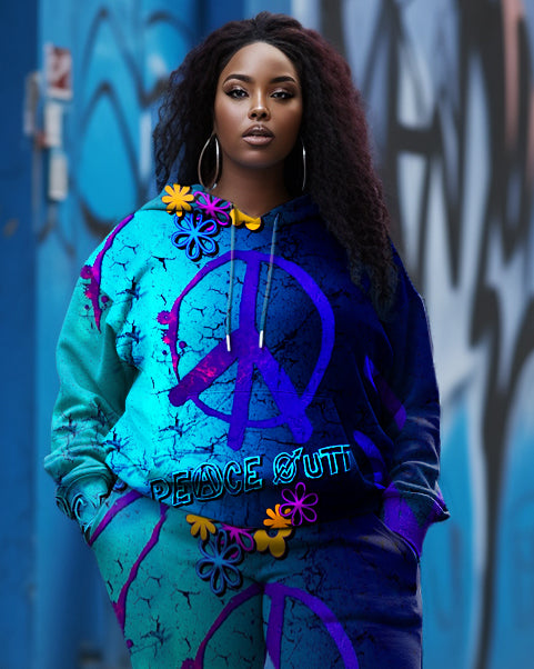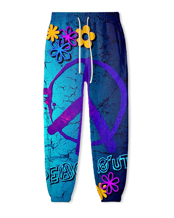 Express yourself in style with our . Featuring a bold blue color and eye-catching graffiti print, this set is sure to turn heads. The loose silhouette creates a relaxed and effortless vibe. Printed with a peace logo, it adds color to your casual wardrobe.
