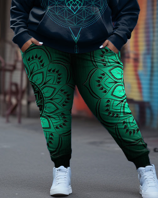 This big and tall two-piece set for women blends spiritual mandala motifs with ombre dye techniques for a dreamy retro vibe. The 4-way stretch fabric moves with your body while the sculpted seams accentuate curves without constriction. Perfect for free-spirited women who value style and symbolism.