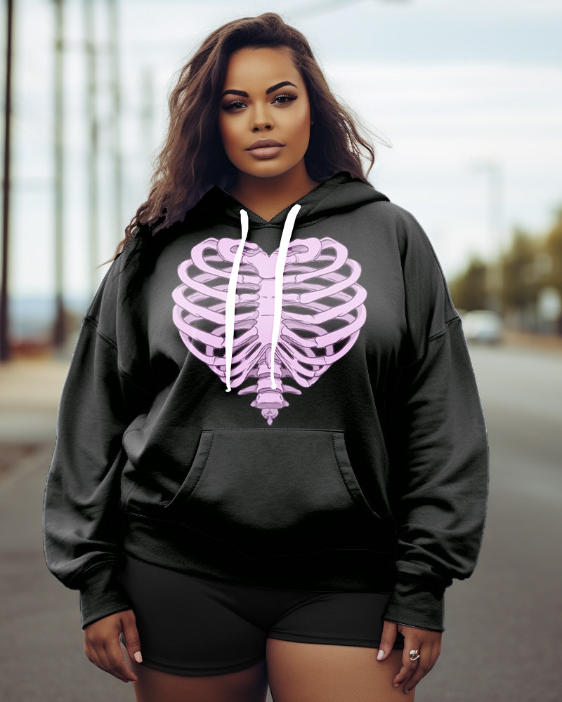 Women's Plus Size Heart Skull Long Sleeve Hoodie