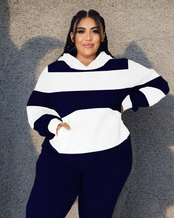 Embrace comfort and fashion in these women's big & tall hoodie sets. The loose-fit hoodie offers a relaxed vibe and freedom, while the classic sweatpants feature side pockets and straps for a laid-back look. It is ideal for expressing individuality with a cool, casual flair!