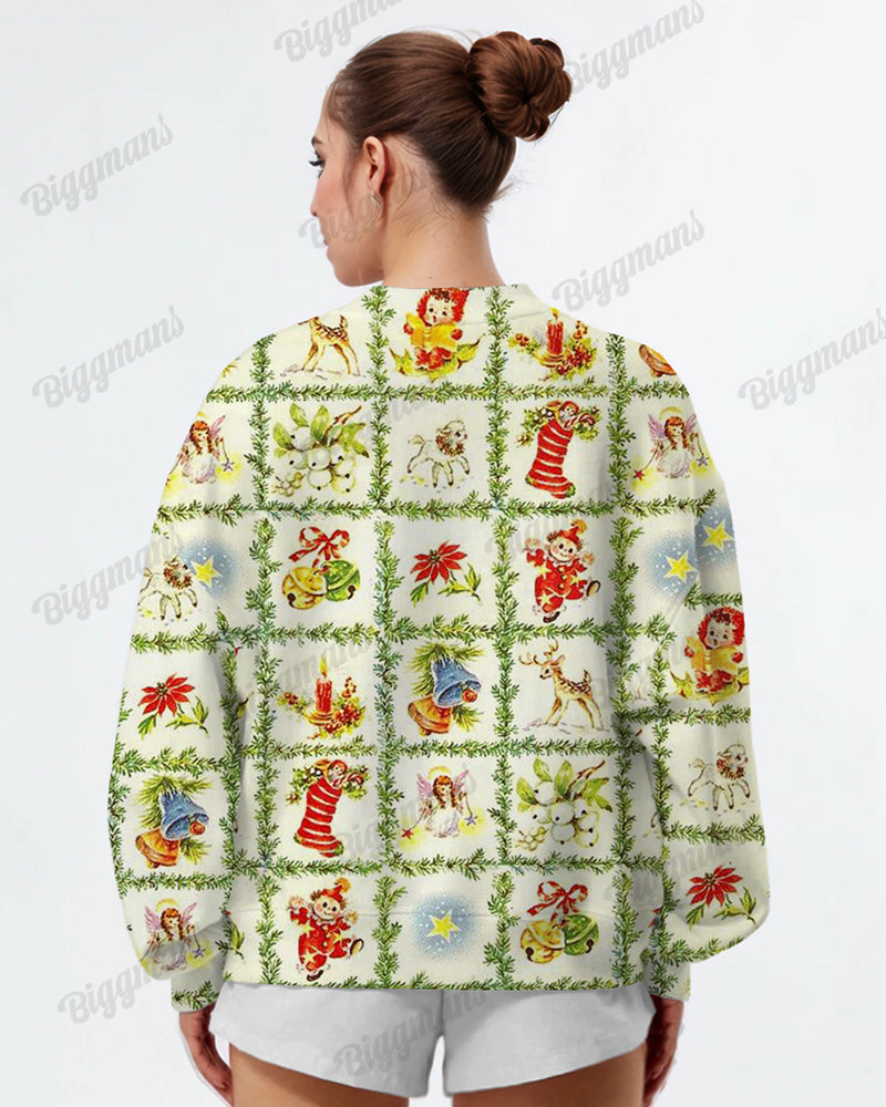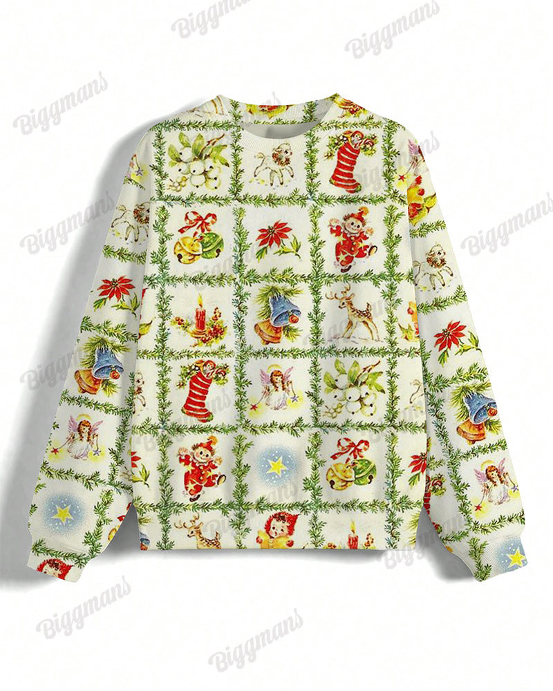 This Sweatshirt showcases a vintage print of christmas bell and elk.Pair it with jeans or leggings for a stylish and cozy outfit.