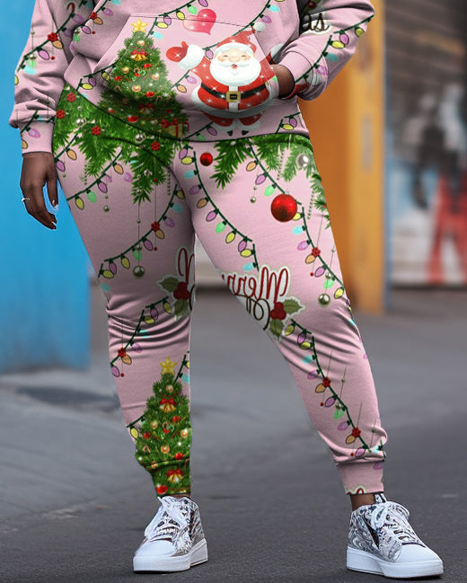 Women's Plus Size Santa Color Lights Hoodie Set Two Piece