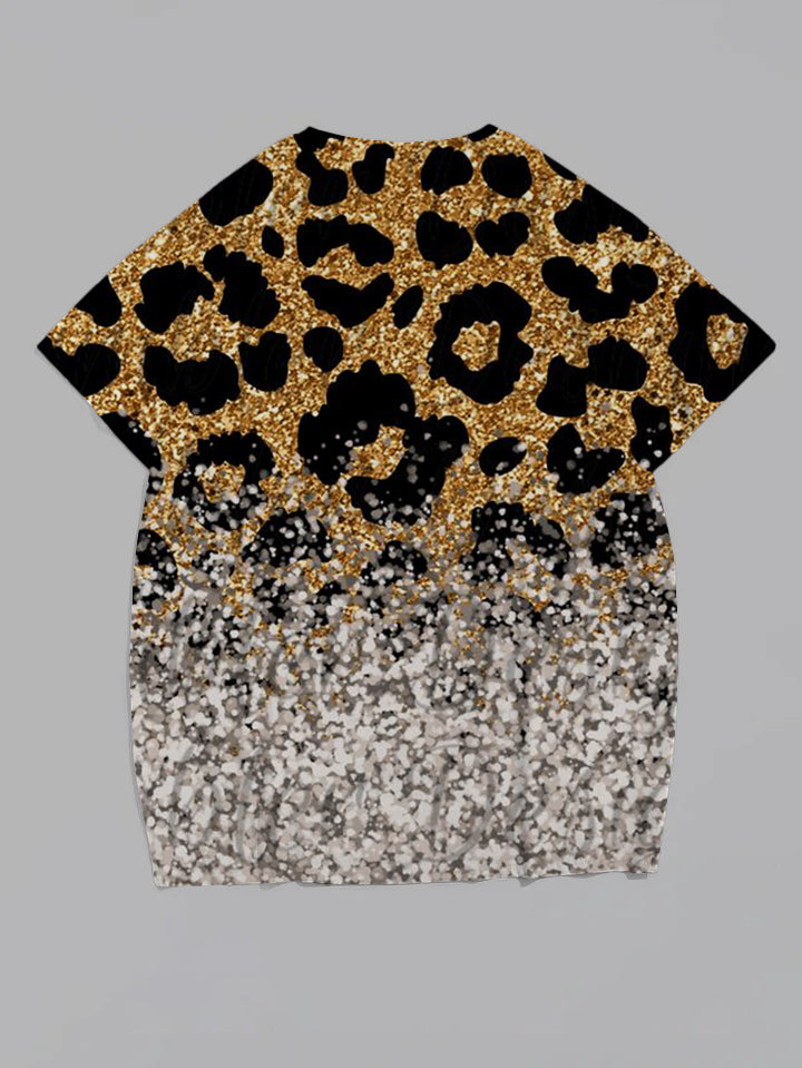 Women's Plus Size Shiny Gradient Leopard Print Round Neck Short Sleeve T-Shirt