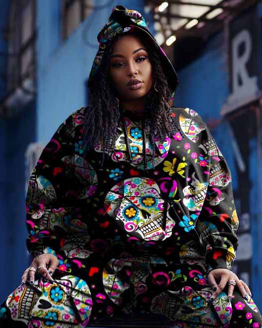 This women's big-size jogging 2-piece outfit combines fashion with comfort. The loose-fit hoodie offers a relaxed vibe, while the classic sweatpants feature side pockets and straps for a laid-back look. Made from breathable fabric, this set is perfect year-round, effortlessly blending style and comfort.