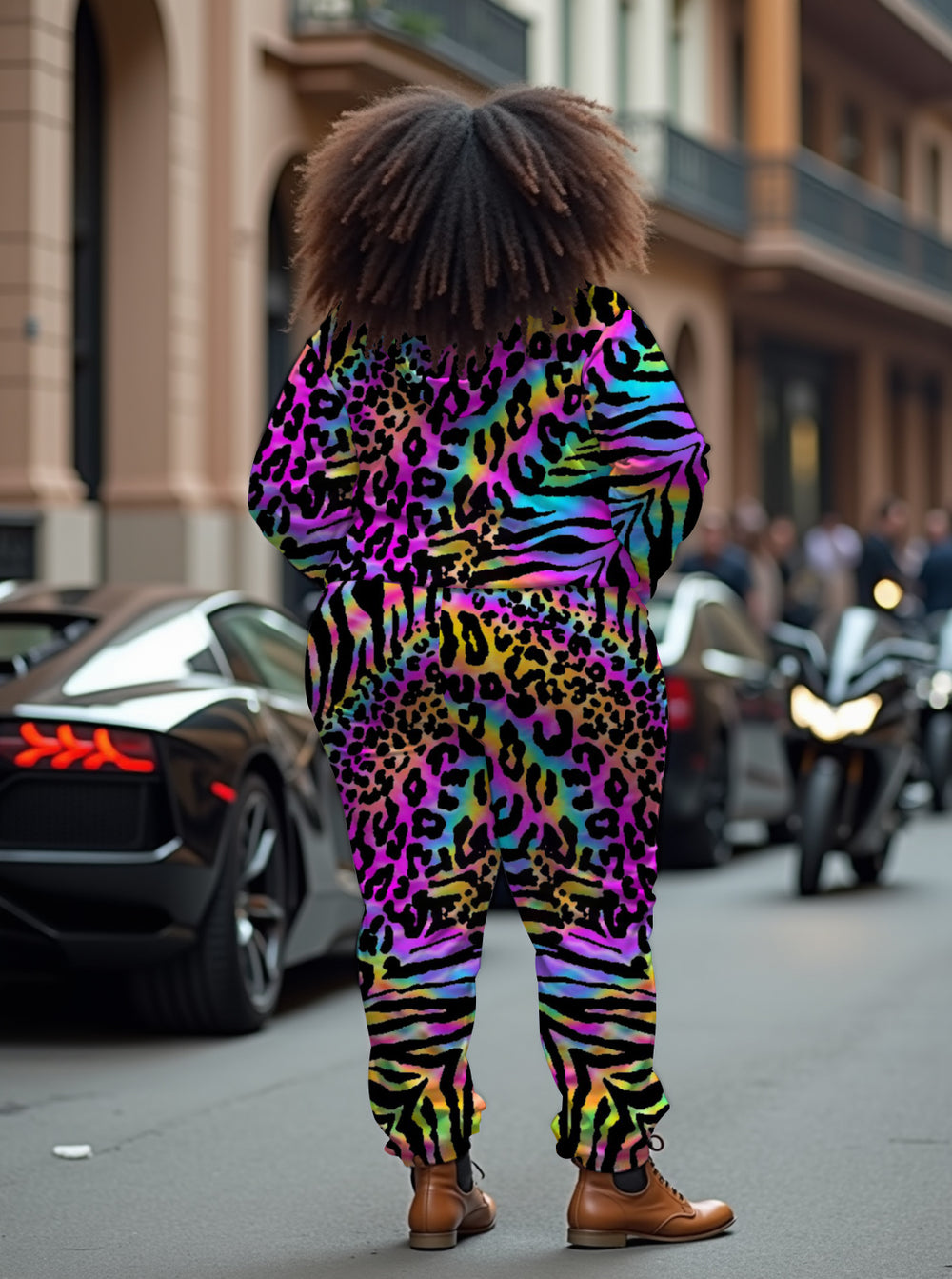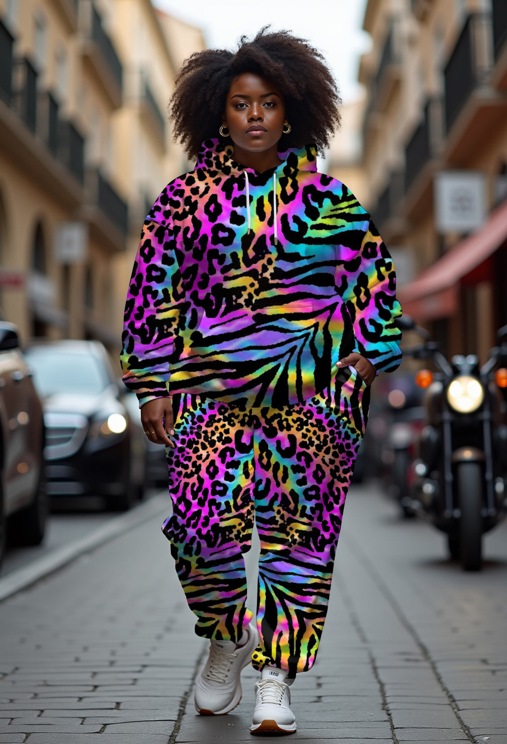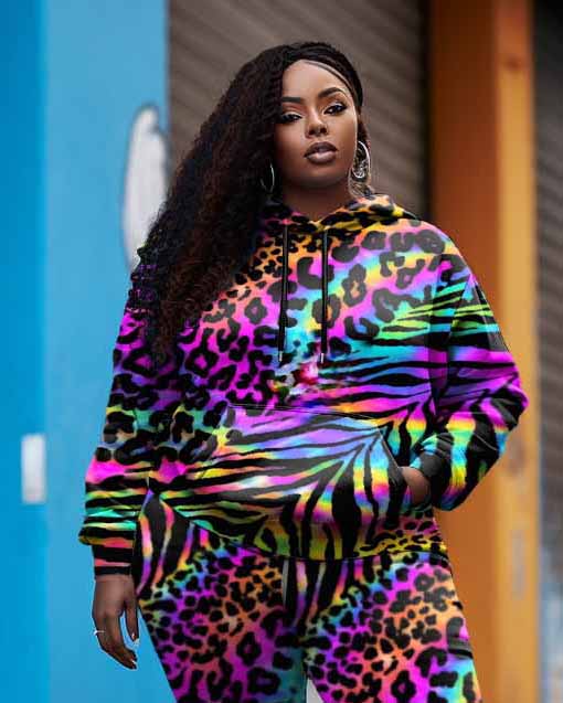 This big & tall women’s hoodie set brings a serious attitude with a vibrant leopard print that shows untamed charm. Designed with a flattering fit and flexible warmth, it's perfect for chill days that still call for style. From street strolls to cozy weekends, this set keeps you comfy, confident, and undeniably cool.