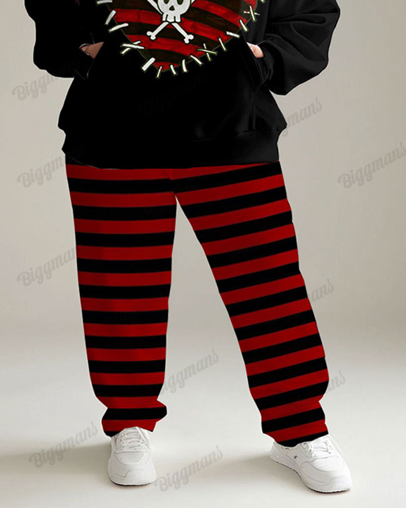 This women's black hoodie set is printed with bold red and black stripes and a cute skull print, giving off a cool vibe. Perfect for fall and winter, the soft fabric keeps you warm while allowing all-day comfort. It blends playful elements with a chic, street-ready edge.