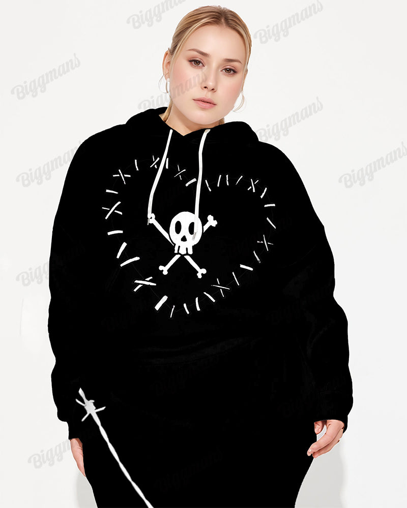 The skull-themed two-piece set is edgy and unique.The hoodie features a detailed skull print on the front, with bold lines that make the design stand out.Whether you're into street fashion or just want to add some attitude to your wardrobe, this skull-themed set is a great choice.